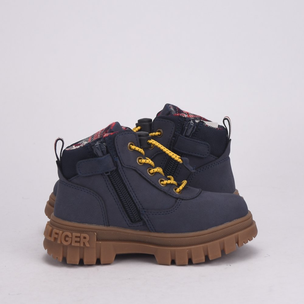 Description : Ces bottes d’hiver Tommy Hilfiger  KIDS sont conçues pour garder les pieds des enfants au chaud et au sec pendant la saison froide. Elles présentent un design à lacets et sont fabriquées avec une tige en matière déperlante, souvent en polyester recyclé, et une doublure intérieure chaude. Leur col matelassé et leur semelle épaisse et crantée assurent un confort accru et une bonne adhérence sur les surfaces enneigées ou glissantes.MADE IN CHINA .